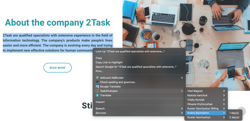 4. Select in Popup Menu “Task2Hubspot”, select User and Estimate.